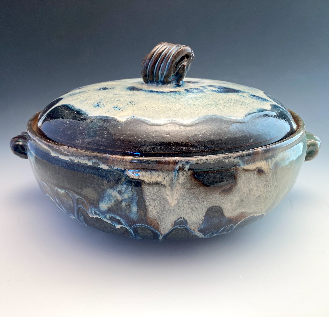 Taos 2-Quart Baker has a somewhat domed lid and unique, dynamic and dazzling surface reminiscent of a Northern New Mexico landscape.