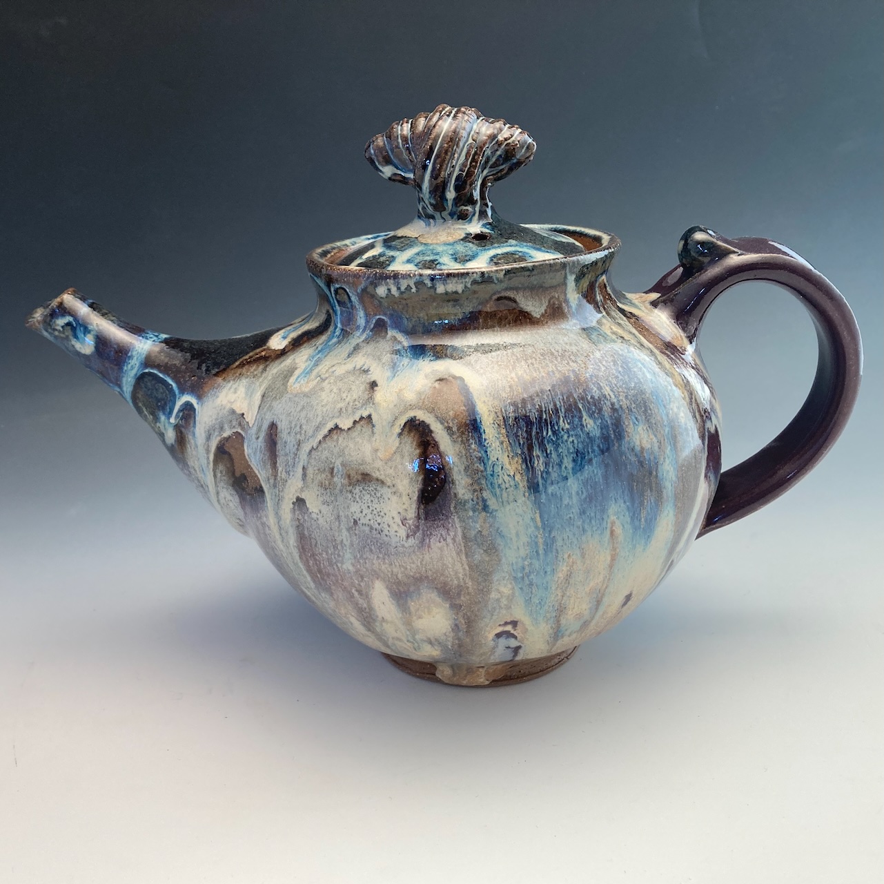 I made Tempest Teapot by throwing the individual elements on a potter’s wheel and then assembling those elements: Body, spout, and lid. All three must work together in order to have a well-balanced and pleasing teapot. Check, check, check!